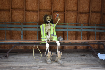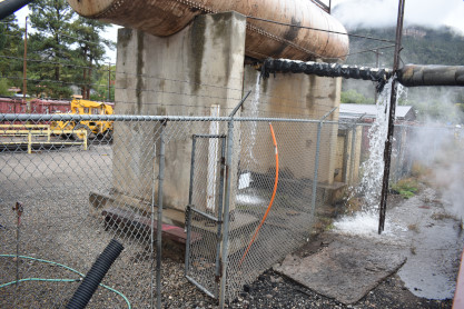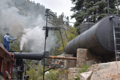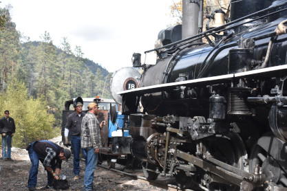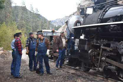 A part from the smoke box blew out the stack but one of the crew members found it and dipped it into the creek to cool it off. A welder was summoned from Needleton to weld the piece back on and to end any more problems with the engine.