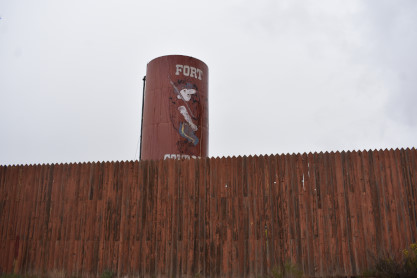 The water tower with the Fort Courage emblem.