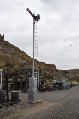 Elizabeth and I woke up at our apartment and after a good breakfast, following our Internet routines, we left and put air in the tires and filled the car with petrol. We took CA Highway 55 to CA Highway 91 to Interstate 215 then Interstate 15 to Interstate 40, stopping at the first rest to change drivers. I drove us to Jersey Mike's in Kingman for a late lunch/early dinner then Elizabeth took over with a stop in Seligman for the first train of the trip.