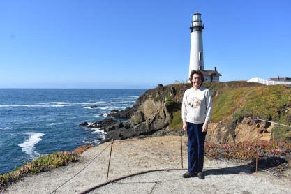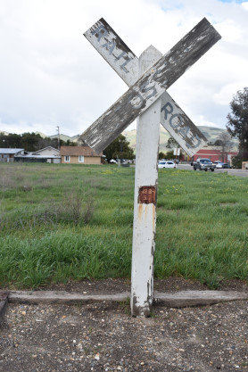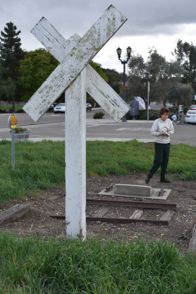 Elizabeth and the concrete crossbuck. From here, I drove us to Oceano.