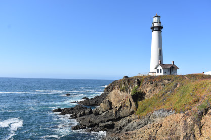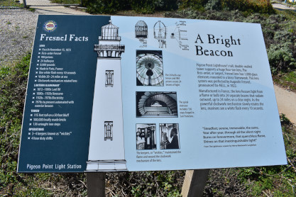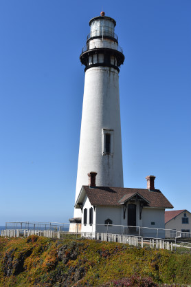 Pigeon Point Lighthouse built in 1871 to guide ships on the Pacific coast of California. It is the tallest lighthouse (tied with Point Arena Light) on the West Coast of the United States. It is still an active Coast Guard aid to navigation. Pigeon Point Light Station is located on the State Route 1, 5 miles south of Pescadero, between Santa Cruz and San Francisco. The 115 foot white masonry tower resembles the typical New England structure.