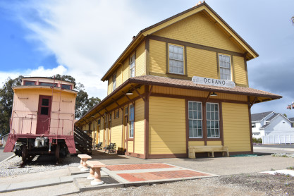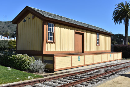 Southern Pacific Oceano station built in 1904 which replaced the original 1896 structure which burned in 1903. This combination passenger and freight depot is located 400 yards south of its former location. The building was closed in 1973 and moved to this site in 1978.