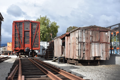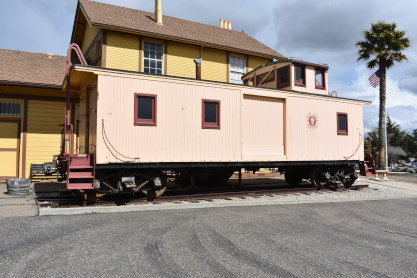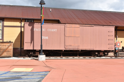 Pacific Coast Railway boxcar 706, built at the railway's Seattle, Washington shops in 1906, has been cosmetically restored on the exterior and the interior has been converted to storage and restrooms, accessible from the freighthouse interior.