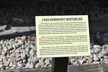 Goleta Depot plaque. We then drove north on US 101 to Nipomo and found no depot but when I asked a gentleman, he told me where to go to see a piece of the Pacific Coast Railway narrow gauge track.