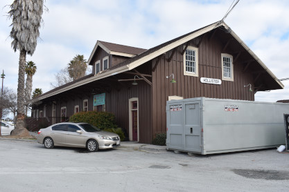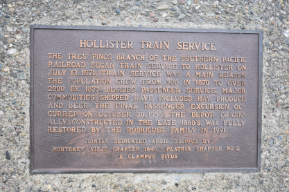 The Southern Pacific Hollister station built in 1892. This is the only railroad structure in San Benito County. I drove Elizabeth through the Pajaro Gap so she could see how the railroad she had ridden on on the Coast Starlight negotiated the San Andreas Fault. From here we went to Watsonville to our next stop.