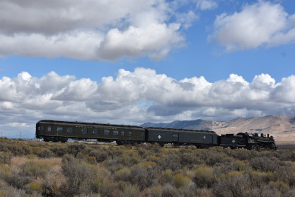 Photo runby five with Nevada Northern 81 at the Moser Cut. We relocated west down the dirt road to the Moser Fill.