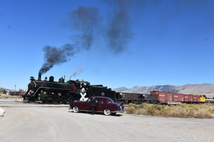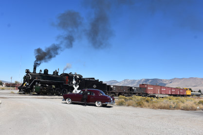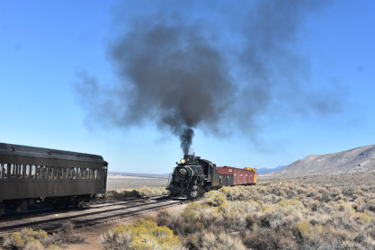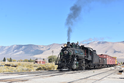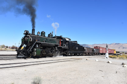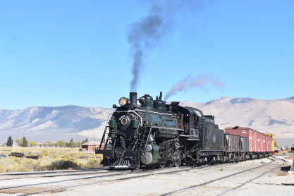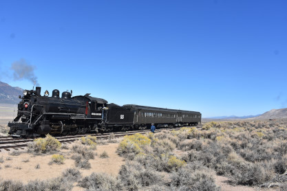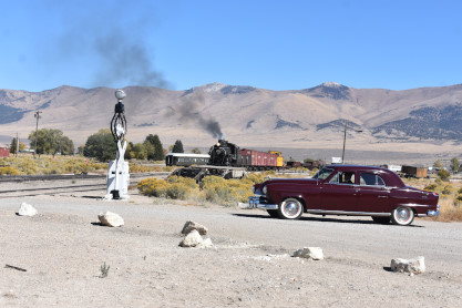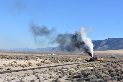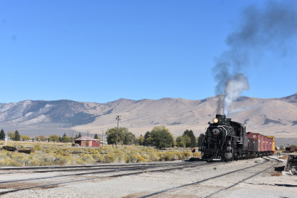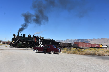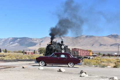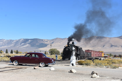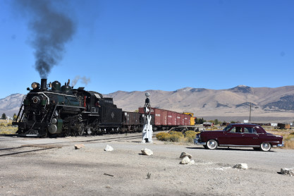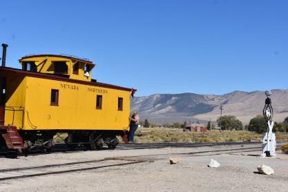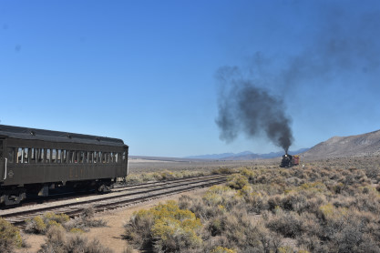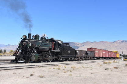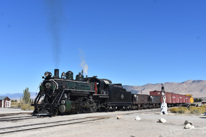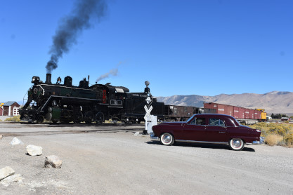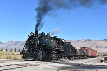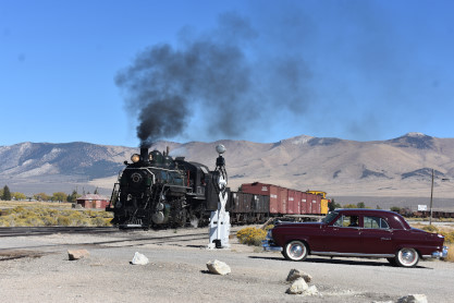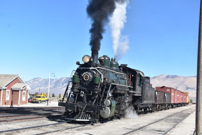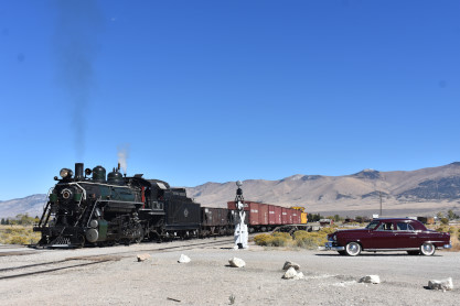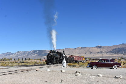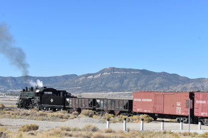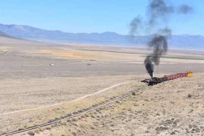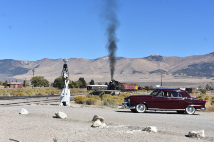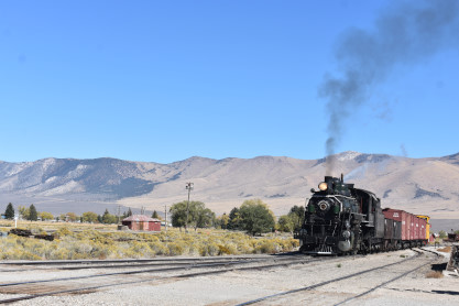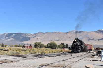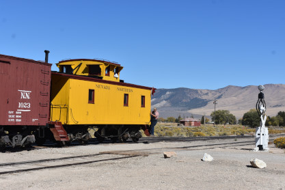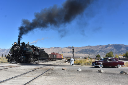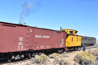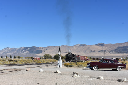 Nevada Northern 81 reversed through the crossing. I had to use the bathroom then collected our belongings from the train and took it to the car.