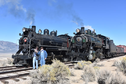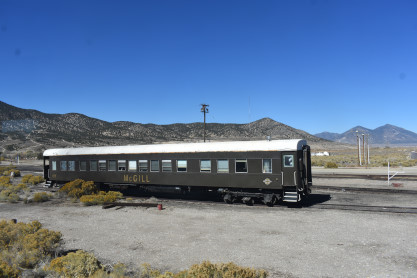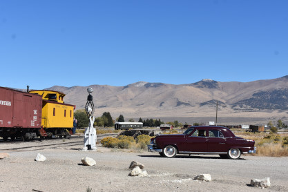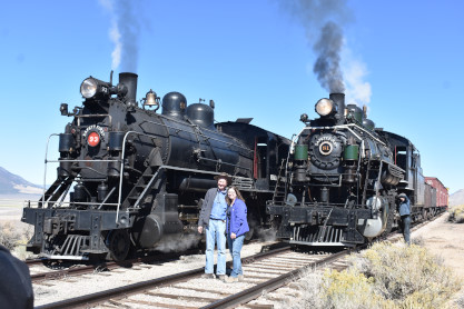 Posed pictures at the wig-wag crossing; this set marked the end of the event. I would like to thank Trains Magazine for putting on this photo charter, as well as the entire Nevada Northern Railway train crew and onboard staff for making this a fantastic and memorable event. I gave Mark Bassett a special thank you for the Nevada Northern timetable that his staff gave me. Elizabeth and I drove away two very happy railfans. We went to Carls Junior for lunch then Elizabeth drove us to Pioche, where we checked into the Overland Hotel and I finished yesterday's story before we had dinner at the Historic Silver Cafe. Aftewards, I finished today's story and we called it a night.