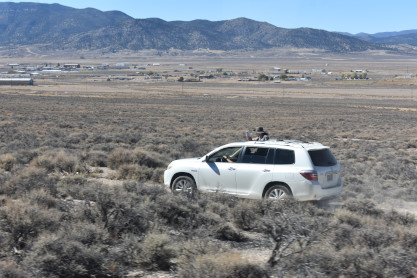 Unsafe railfans chasing our train down a bumpy dirt road.