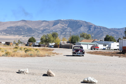 10/11/2021 Elizabeth and I awoke in Pioche and after doing our internet routines, we checked out and loaded the car. Since the Historic Silver Cafe did not open until 8:00 AM and there is no other restaurant in the town, we stopped at a Sinclar gas station and picked up donuts and a cinnamon roll for me along with a bottle of lemonade and Elizabeth had a danish and an orange juice. I ate the donuts on the way to the first stop of the day.