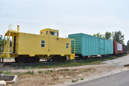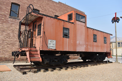 Northern Pacific caboose which became Morrison Knudsen 5235901 before going to the Promontory Chapter NRHS. It was then donated to the Salt Lake, Garfield and Western for restoration which did not occur and was sold, restored and is now on display at Mount Pleasant. All the box cars are Union Pacific.