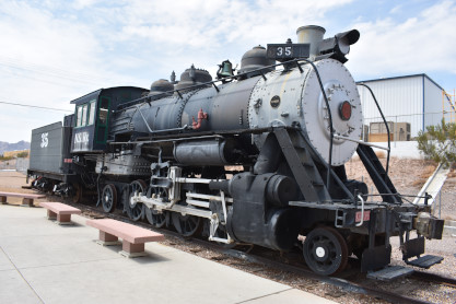 Pacific Lumber Company 2-8-0 35 built by Baldwin in 1923 and used in Scotia, California. In 1966 it was sold to Edward & Julius Nervo then two years later sold to Gunner Henriolle and in the 1970's, sold to the Promontory Chapter of the National Railway Historical Society. It was transferred to the Wasatch Railroad & Museum Foundation and operated on the Heber Creeper Scenic Railroad during the 1970s. Some time during the early 1980s, 35 was taken out of service and placed in storage, where it remained until 1993, when it was sold to the Nevada State Railroad Museum.