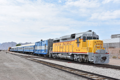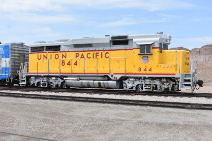 Union Pacific GP30 844, built by Electro-Motive Division in 1962, which caused Union Pacific 4-8-4 844 to be renumbered to Union Pacific 8444. 844 last operated in service in the North Little Rock, Arkansas, area during mid November 1988. The following year, when it was donated to the Nevada State Railroad Museum, it was the last GP30 retired by the UP. It now hauls passenger excursions along four miles of track running from the Boulder City Station to Railroad Pass.