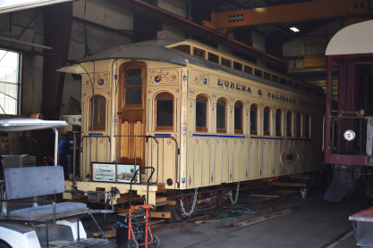 Eureka and Palisade Railroad combine "Elsa" being built by Dan Markoff who restored Eureka and Palisade 4-4-0 4.