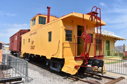 Nevada Southern Railway caboose, formerly Union Pacific 906255 and originally Union Pacific 25578 built by International Car in 1964. It has been restored as a crew car.