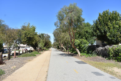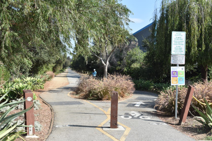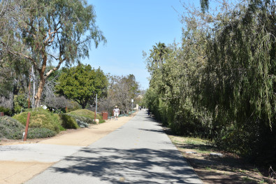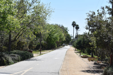 The 4.5 mile Whittier Greenway Trail begins in the northwest corner of Whittier, California, near the 605 Freeway, and closely parallels Whittier Boulevard. When it reaches Painter Avenue, it travels along Lambert Road to Mills Avenue, where the abandoned right-of-way ends. There is an active rail line traveling east from Mills to the city limits, and Whittier hopes to eventually acquire an easement along this line to extend the trail. The cities of La Habra and Brea are interested in continuing the pathway through their communities. This extension would effectively link Los Angeles County's trail system with Orange County's trails, and would be the only such connection in southeast Los Angeles County. Benefits of the Whittier Greenway Trail are alleviating traffic congestion, improving air quality and providing a scenic greenbelt area through the center of Whittier. The trail increases travel safety for those who prefer to bike or walk to their destinations. The Greenway connects with local and regional bus systems, including Metro, Foothill Transit, Montebello Bus Lines and Norwalk Transit.