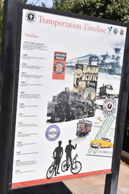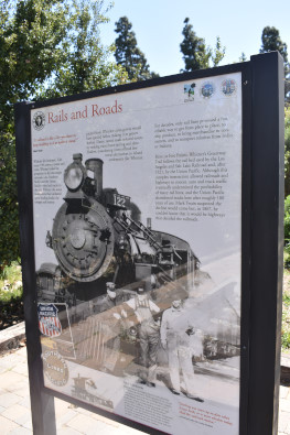 On the way to Sycamore Station which is the station that has something to do with railroads. Near the Five Points intersection, Sycamore Station recognizes native California Sycamore trees and describes the history of surface transportation in Whittier, from wagons and trains to the railroad and the early automobiles that traveled along the path of a pre-Whittier Boulevard and the Camino Real. The old railroad "Salt Lake Route" logo is displayed and the unique mid-20th century teenage phenomenon of "cruising Whittier Boulevard" on Friday and Saturday nights is memorialized.