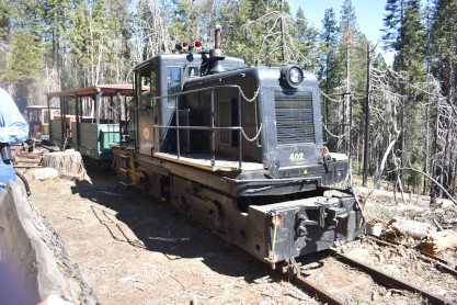 Yosemite Mountain Sugar Pine narrow gauge centre-cab switcher 402, ex. Durango & Silverton PB2, exx. East Broad Top AS1, nee Algoma Steel AS1, built by General Electric in 1951.