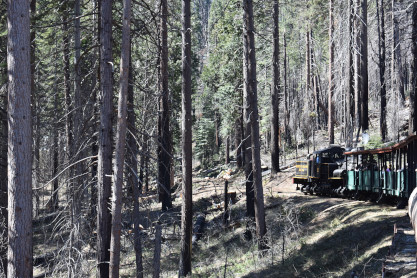 Now sit back and enjoy a ride on the Yosemite Mountain Sugar Pine Railroad. Conductor Samantha gave a running commentary down the mountain of past railroading, botany with respect to sugar pines and Ponderosa pines and history. She was excellent.
