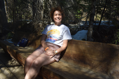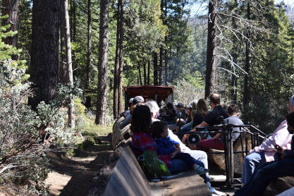 My lovely wife Elizabeth enjoying her time aboard the Yosemite Mountain Sugar Pine Railroad and the comfortable log car.