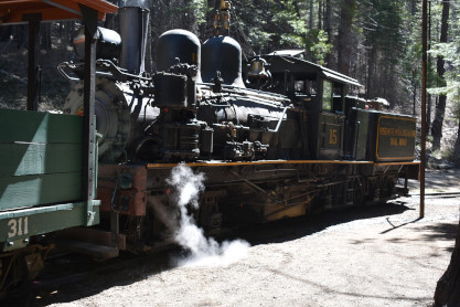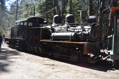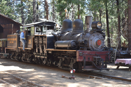Yosemite Mountain Sugar Pine 3 truck shay 15 built by Lima in 1913 as Sierra Nevada Wood and Lumber Company 9. It became Hobart Estate Company 9 in a 1917 corporate sale, then was sold to dealer Hyman-Michaels Company in 1938. The following year, it became West Side Lumber Company 15 and in 1958, a corporate sale to Pickering Lumber Corporation. At a later date, it was sold to Francis Cottie to become West Side & Cherry Valley Railroad 15, in 1977, sold to Glen Bell, same number and in 1986, sold to Yosemite Mountain Narrow Gauge Railroad.
