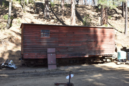My final pictures of Yosemite Mountain Sugar Pine Shay 15. Elizabeth went to the gift shop and bought T-shirts for both of us as well as pins and a Christmas ornament. We returned to the car and decided to take a different route down the mountain, so we took CA Highway 41 to CA Highway 49 to Road 600 which took us to the next major surprise of our trip.