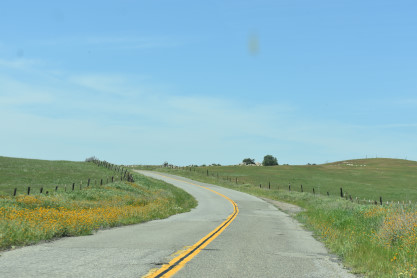 We passed many blooming wildflowers on our drive to the BNSF main line, which we followed into Merced and went to Carl's Jr. for lunch.