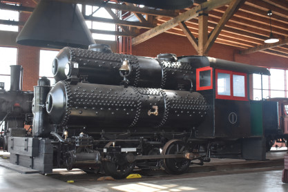 Columbus and Southern 0-4-0F 2 built by Heisler in 1930 and used at the electric generating plant in Groveport, Ohio. This unique engine design was popular for use in areas where flammable substances were handled, such as in textile mills, chemical plants and coal-burning power plants. It was eventually retired and donated to the Penn-Ohio Railfan;s Association. For several years this and another fireless locomotive were stored in a field south of Canfield, but 2 was acquired by the Old Express Restaurant in Sharon, Pennsylvania, and moved to its diner display site on June 13, 1974. Over the years the building and 2 passed into the ownership of Travel Centers of America and went through a number of different tenants. Finally, the structure was scheduled for demolition in 2017, and the future plans for the property did not include the old locomotive. In stepped the Age of Steam Roundhouse, with an offer to purchase the engine and preserve it in Sugarcreek.
