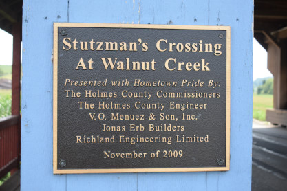 Stutzmann's Crossing Covered Bridge across Walnut Creek built in 2009. It was named after Jonas "Weiss" Stutzman, Holmes County's first official white settler.