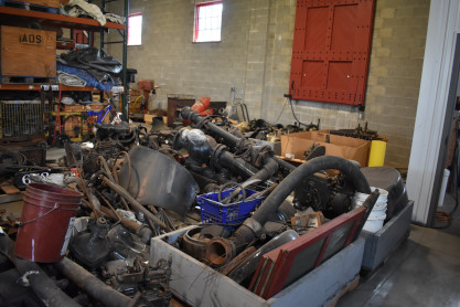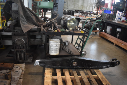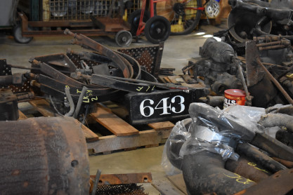 All the parts that could be removed from Bessemer & Lake Erie 2-10-4 643 are here, which came from McKees Rocks, Pennsylvania. They are waiting to acquire the locomotive, cab and boiler which are too large to be moved by rail, as they are too large by road.