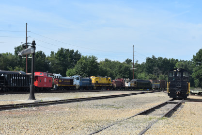 New York and Pennsylvania Paper Company 25 ton switcher 2 built by General Electric in 1951 for use on the 36" gauge railroad inside its plant in Johnsonburg, Pennsylvania. Later purchased by John Uher and modified to standard gauge, the engine ran on John's private Coshocton, Otsego and Eastern Railroad. While only 175 horsepower, number 2 is frequently used to move much larger engines around the AoSR site.