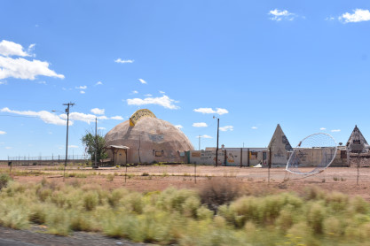 The Meteor City historic trading post located on Route 66 west of Winslow. Despite the name, Meteor City was never the name of a town, but rather was a trading post. It was named in honor of the nearby Meteor or Barringer Crater and is the first of three Route 66-inspired roadside attractions located only a few miles apart along a 30-mile stretch west on Interstate 40 from Winslow to Flagstaff: Meteor City; the ghost town of Two Guns and the ruins of the Twin Arrows Trading Post/Diner and Gas Station, which now marks the turnoff for the new Twin Arrows Navajo Casino Resort.