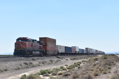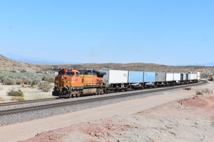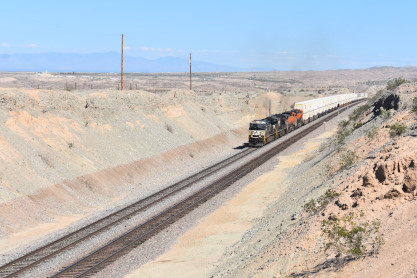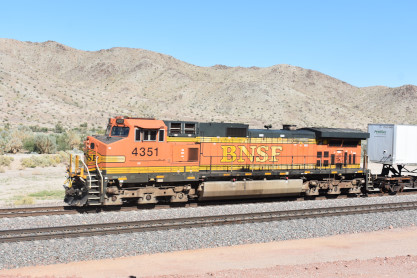 BNSF 4351 West with DPU BNSF 8158. From here we drove east though Needles and near the Park Moabi exit, I spotted another westbound train so exited and did not have long to wait.