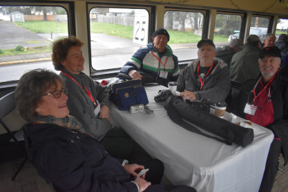 Eizabeth Guenzler, Mrs. Sheehy, Steve Ferrari, Robin Bowers and Carl Morrison were all seated with me on this trip. The train departed and about ten minutes later, we stopped at the old Weldwood Lumber Mill site. A selection of doughnuts and other pastries were offered and we both enjoyed a maple bar and a frosted doughnut.