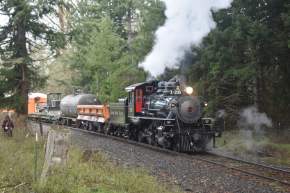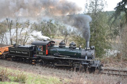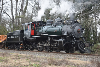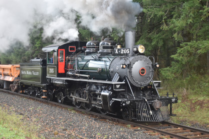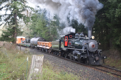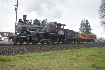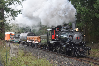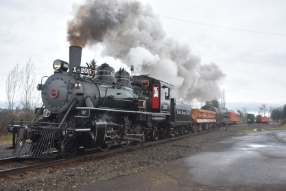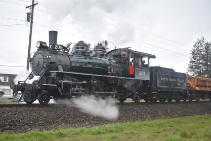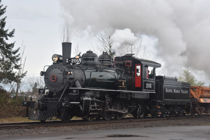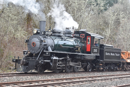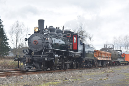 Number 205 was built by Baldwin in 1924. Retired and placed on display in Santa Maria, Calif., in 1950, it was acquired in 1983 and restored by a private owner, George Lavacot. Earlier this year, it was moved to its new home at the Santiam Excursion Train, which operates on the Albany & Eastern Railroad in Oregon's Willamette Valley. Regular operations with the engine begin in early December.