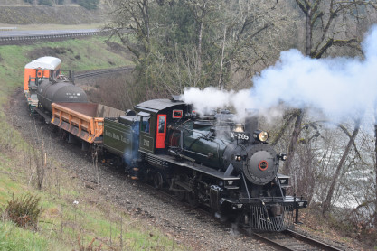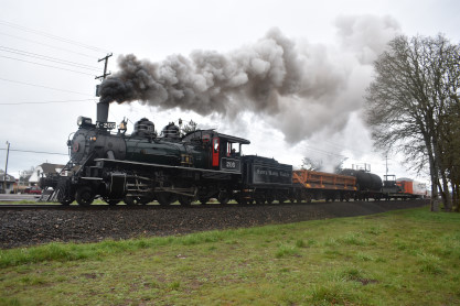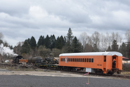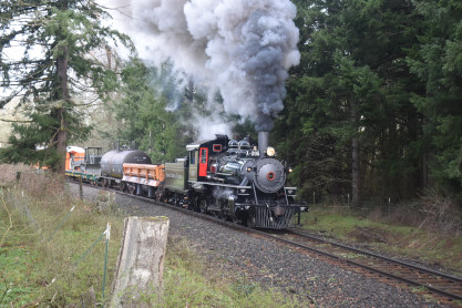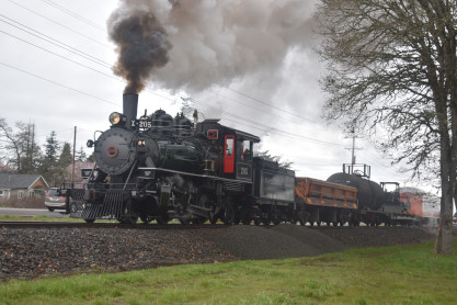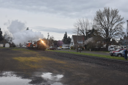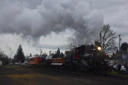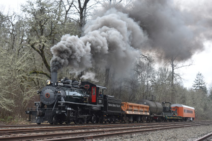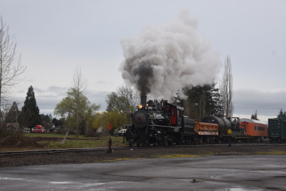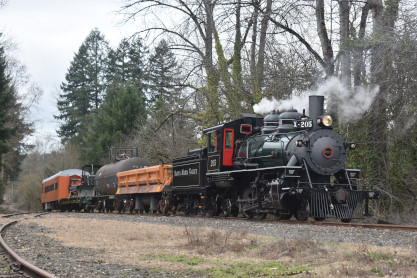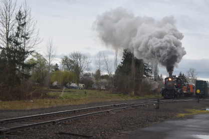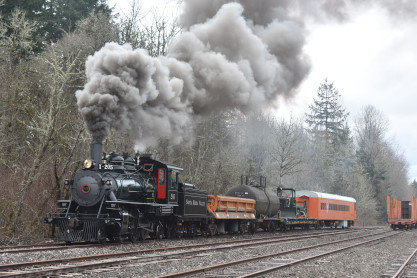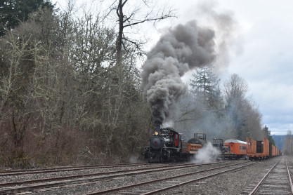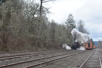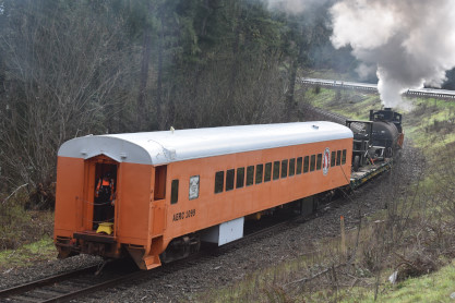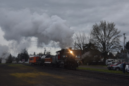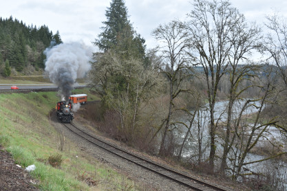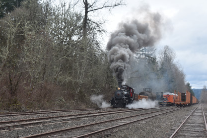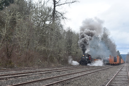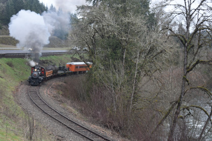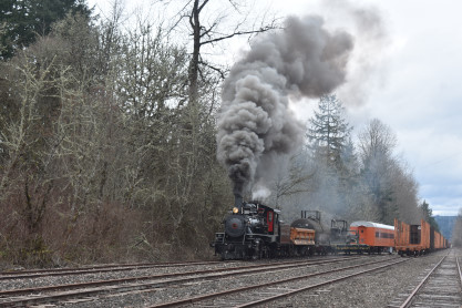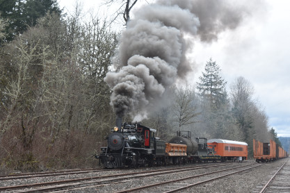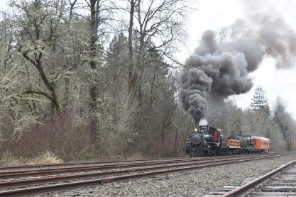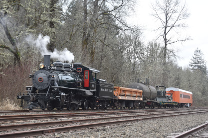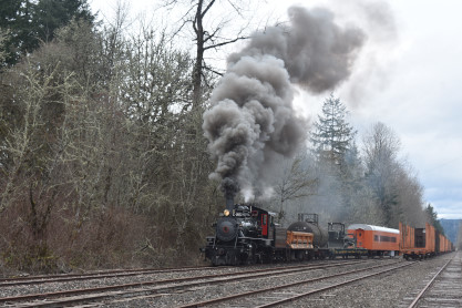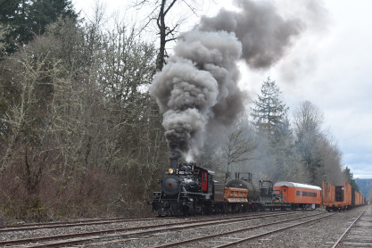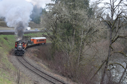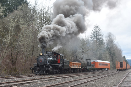 The locomotive and two coaches will make multiple photo runbys on the railroad's scenic Sweet Home Branch from 8 a.m. to 3 p.m. Lunch will be included. The date is the Friday before Winterail, the annual multi-media photography and rail collectibles show in nearby Corvallis, Ore. After pandemic-related postponements, Winterail is resuming for the first time in two years as a two-day event in 2022. The excursion starts only 18 miles away from Corvallis.