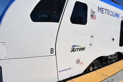 Metrolink, San Bernardino County Transportation Authority and the Arrow emblem on these cars.