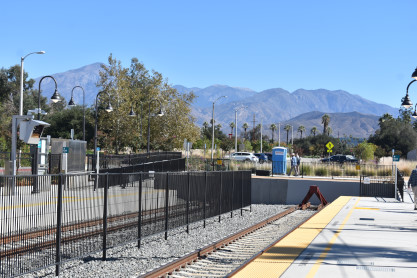 We came to our first station at San Bernardino-Tippecanoe. The train ran under Interstate 10, then past double-track section on the way to our next station.