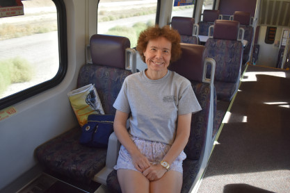 My beautiful wife Elizabeth ready for a good day of train riding.