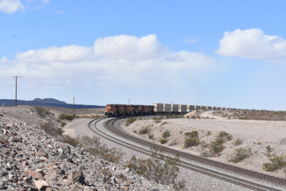 BNSF 4965 East at East Pisgah. We then made it back to Interstate 40 and outside Barstow, I took two pictures from the truck window.