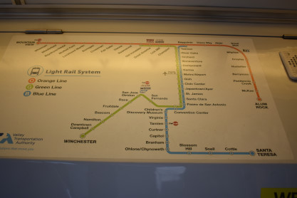 We awoke at the Quality Inn and after finishing the Internet we went to the Black Bear Diner for breakfast. I then drove us to the Caltrain Mountain View station and we paid to park. This morning I would finish up the Santa Clara Valley Transportation Authority Light Rail system with a ride from Mountain View to Baypointe.