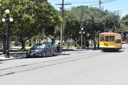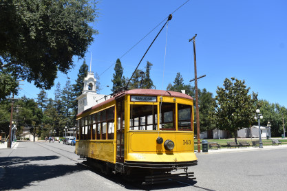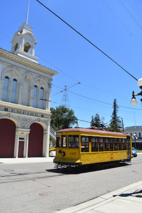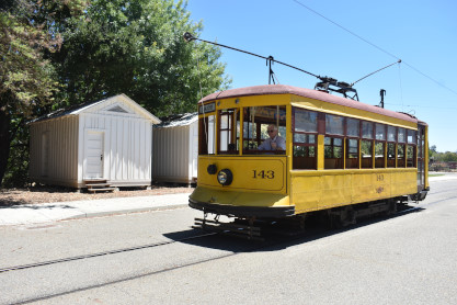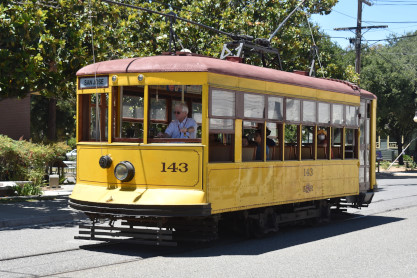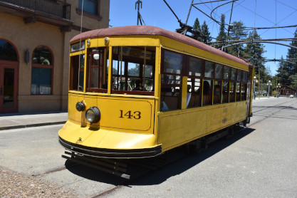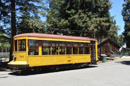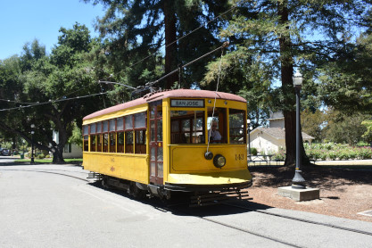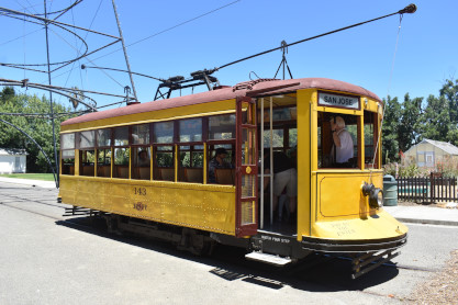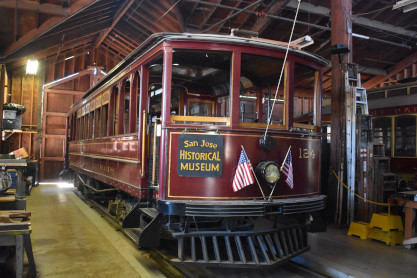 San Jose Trolley 124 was built by the American Car Company in 1912 for the San Jose Railroad. It ran in San Jose from 1912 to 1934 when it was sold with Car 73 for use as housing. In 1920, its original red paint scheme changed to yellow and the windows were added to the open sections. Car 124 was restored and returned to service on November 18, 1988.