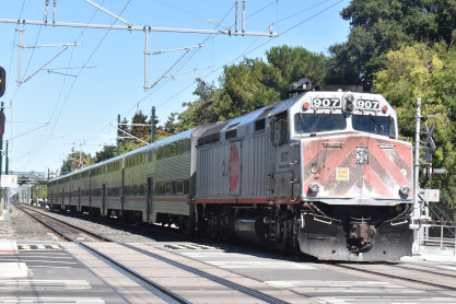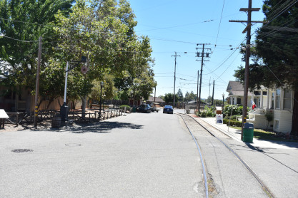 Caltrain 229 heading for San Francisco from San Jose. I drove Elizabeth along the VTA lines into San Jose before we went to Walmart but no film was to be had. From here it was a short distance to the San Jose Trolley Barn at History Park, where we paid to park down the road in Kelly Park.