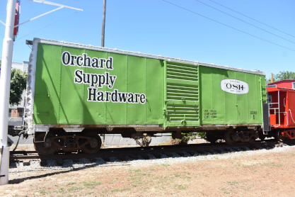 Orchard Supply Hardware Boxcar 1. In the early 1960s, the City of San Jose denied owner Al Smith permission to install a sign along Auzerais Street to promote his Orchard Supply Hardware store because a sign for the store already existed facing San Carlos Street. Undeterred, Smith bought this boxcar from Southern Pacific, painted the car with the OSH logo, and placed it at the end of the spur track behind his store and alongside Auzerais Street. It remained in that spot for nearly 50 years, and was occasionally featured in OSH's promotional material. Because of its long-term private ownership, the boxcar still closely resembles its "as-built" condition. Recognizing its historic relationship to the San Jose community, OSH donated the boxcar to the California Trolley and Railroad Corporation in 2013 for display in a museum setting. Al had to get his reporting mark from the Assocation of American Railroads.