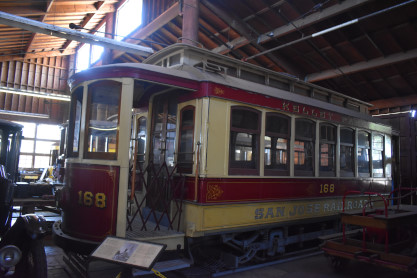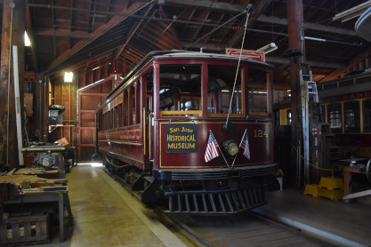 History Park of San Jose Trolley BarnElectric trolleys were the main source of public transportation in San Jose between 1880 and 1938. These streetcars operated on nearly 130 miles of track throughout Santa Clara Valley. Automobiles were too expensive to be widely owned, so many San Jose residents used trolleys to travel around town and into the countryside, with tracks extending as far as Los Gatos, Saratoga, Alum Rock Park and Palo Alto.