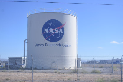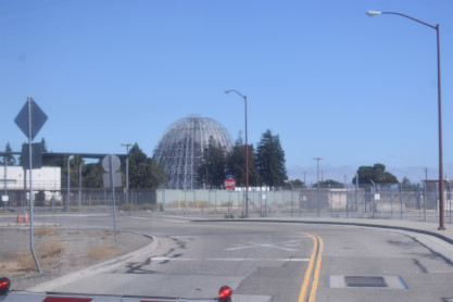 Hangar One, one of the world's largest free-standing structures, covering eight acres at Moffett Field. The massive hangar has long been one of the most recognizable landmarks of California's Silicon Valley. An early example of mid-century modern architecture, it was built in the 1930s as a naval airship hangar for the USS Macon and is now part of the NASA Ames Research Center.