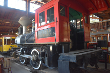 Atchison, Topeka & Santa Fe Railway 0-4-0 5 was built by Baldwin in 1899 as Santa Fe Terminal Railway saddle tank locomotive 1 to work in San Francisco. It was transferred to the AT&SF in 1912, where it was renumbered 02419. In 1945 it was re-numbered again to 9419. It was rebuilt with a tender to appear in the 1948 Chicago Railroad Fair as "Little Buttercup" named after a character in the Gilbert and Sullivan operetta "HMS Pinafore". An oil burner, it weighs 69,860 lbs and has 17" x 24" cylinders and 51" drivers. Operating at a boiler pressure of 160 psi, it delivered 18,500 lbs tractive effort. Three years later, it appeared in the Columbia Pictures movie "Santa Fe" starring Randolph Scott and based on the novel of the same name by James Vance Marshall. Santa Fe donated Little Buttercup to the California State Railroad Museum and later it made its way to here.