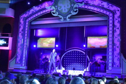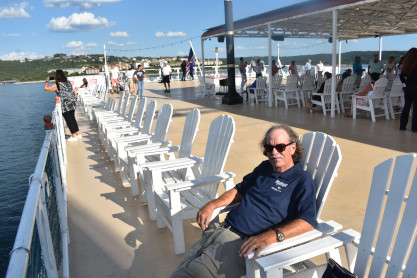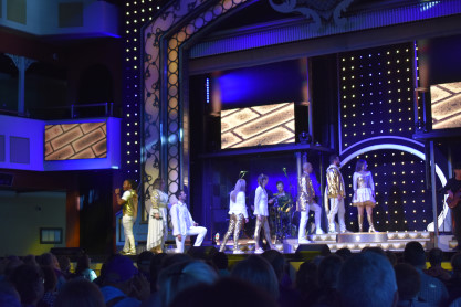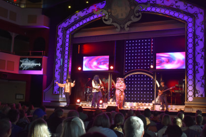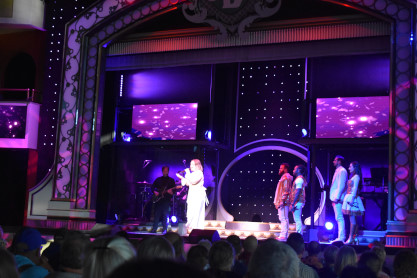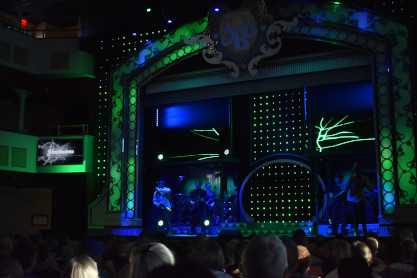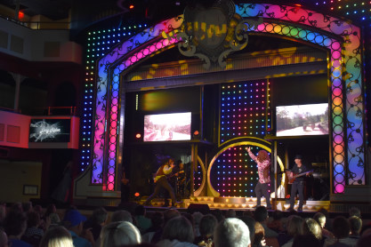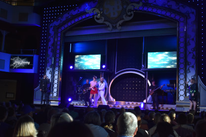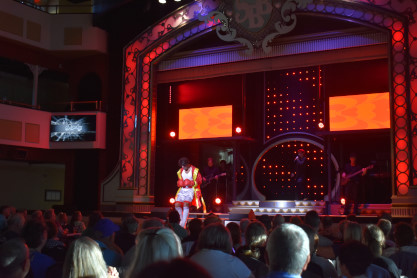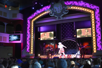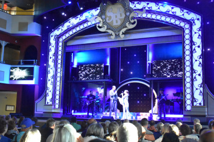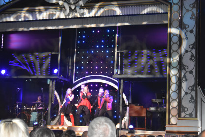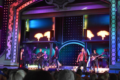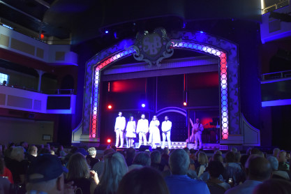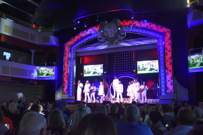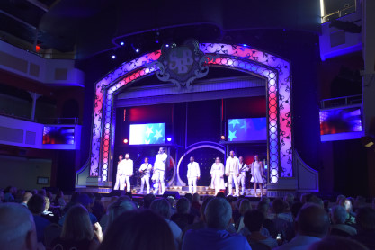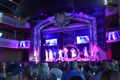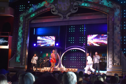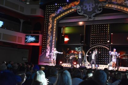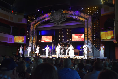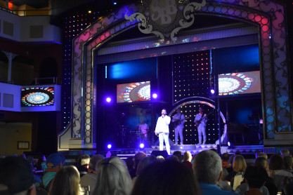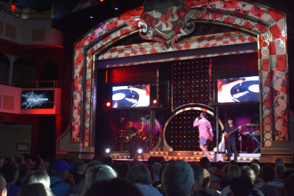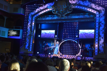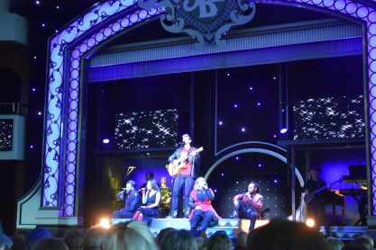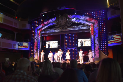 "America the Beautiful", "Star Spangled Banner", "Coming to America" and "Amazing Grace". Christopher James then entertained with a magic trick and had two guests from the audience, one who played drums and cymbal and the other who cut the rope. Christopher then did it in slow motion and everyone laughed at this. Once the show was over, we returned to land.