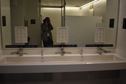 The benefits of a Dyson airblade dryer. We had about a half-an-hour layover and browsed the small store area on the second floor. To enter, you had to put your credit card in a slot then the doors opened. If you wanted to buy something, you picked it up and walked out of the other set of doors and the cost of the items were automatically put on the card. This removed the human contact and interaction of a cash register/checkout stand which we did not like. However, we did acquire a couple of snacks.