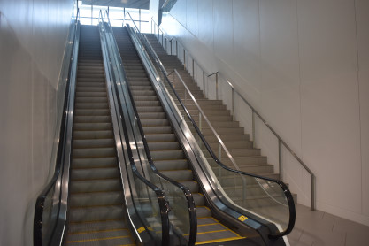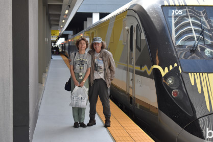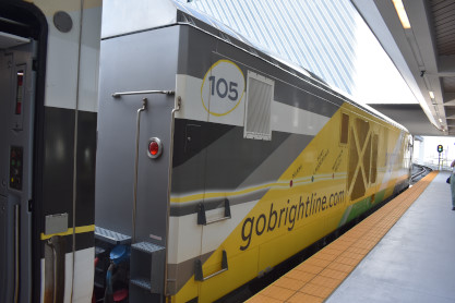 You come down the escalator to the train. Now enjoy the views from a Brightline train to Miami.